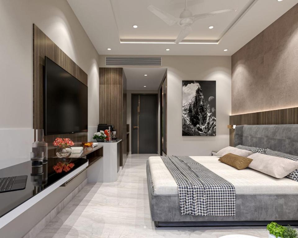 Each room at the hotel is furnished with a desk, and the private bathrooms are equipped with a shower and complimentary toiletries. All rooms at Trimrooms Shubharambh Ayodhya include a flat-screen TV, air conditioning, and some even offer views of the garden. Guests can expect amenities such as a wardrobe and a kettle in each room.